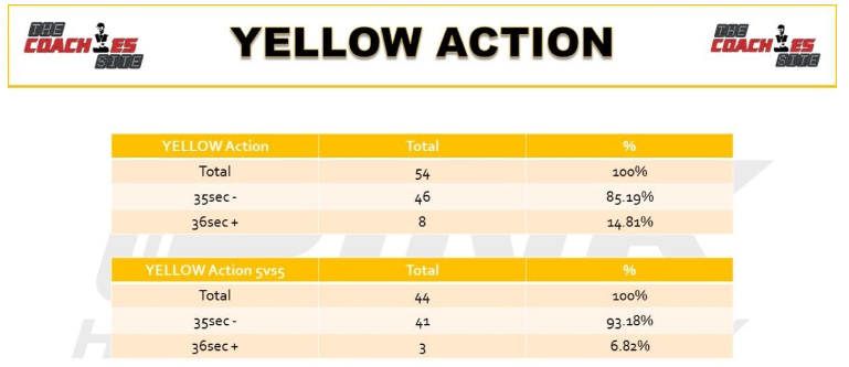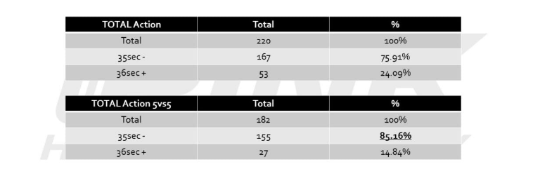 Но и действия в «жёлтой зоне», так же чрезвычайно опасны для соперника, и могут быть вполне продуктивны для такого мастеровитого парня, как Рафаэль Харвей – Пинар. Но вот, что меня поразило, на 41 действие в течение первых 35 секунд смены, всего только три действия в течение 36+ секунд. Убедительный показатель.