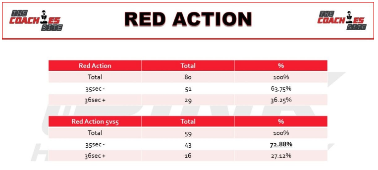 Категория «красные броски» - это любые броски по воротам совершённые не из области «жёлтой зоны», которые несут меньший процент угроз, поскольку не таят большой опасности для вратаря соперников.