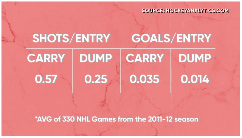 В этой статье мы постарались учесть все переменные данного вопроса и проанализировать каждую из двух возможностей: должна ли моя команда входить в зону соперника через вброс шайбы, или попытаться войти в зону контролируя её?