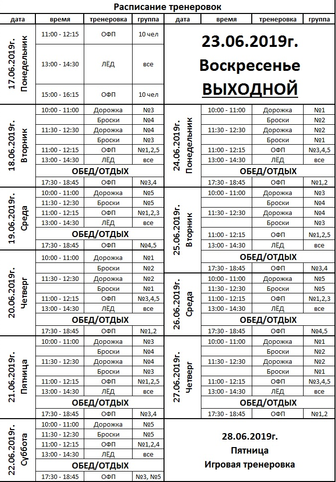 с 17 по 28 июня, спортивно-тренировочный комплекс "Красная Звезда" откроет традиционный тренировочный сбор повышения индивидуального спортивного матсерства для игроков системы КХЛ, ВХЛ, МХЛ и профессиональных хоккейных лиг Европы и Северной Америки.