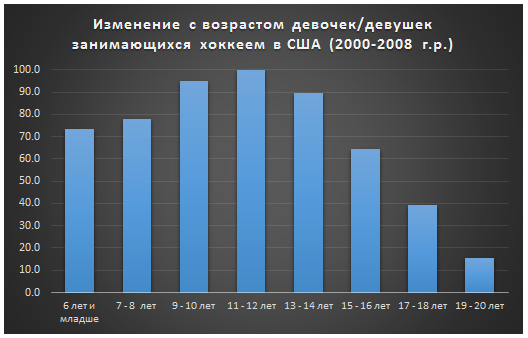 Что касается девушек, то выход в юниорский хоккей еще меньше, порядка 40%, а во взрослый около 15%.