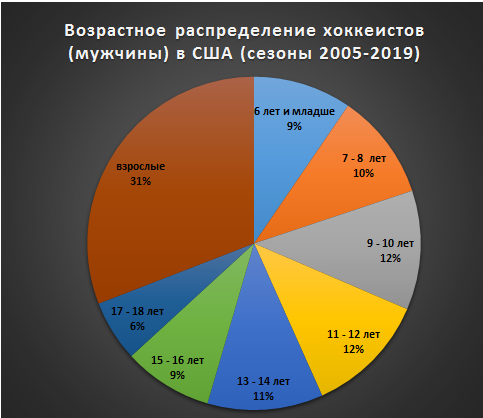 Из ежегодного отчета ИИХФ за сезон 2018-2019 известно, что в США насчитывается более 567 тысяч хоккеистов, где 70% из них это дети и юниоры, а 180 тысяч игроков взрослые. Причем в на старте сезона НХЛ 2019-2020 в лиге играет лишь 177 американцев.