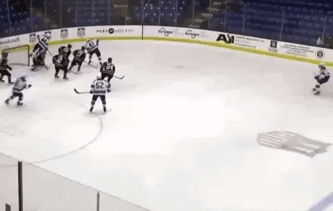 Давайте рассмотрим два примера игры Кейси, находящегося в свободной зоне. Сначала тот, где, получив шайбу после перевода от своего партнёра, он «застревает» на месте из-за пассивности, которую демонстрирует по ходу всего эпизода.